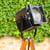 Der Spot sitzt auf einem höhenverstellbaren alten Tripod Holzstativ. Die Höhe der Stehlampe kann stufenlos von ca. 120 bis 160 cm eingestellt werden.